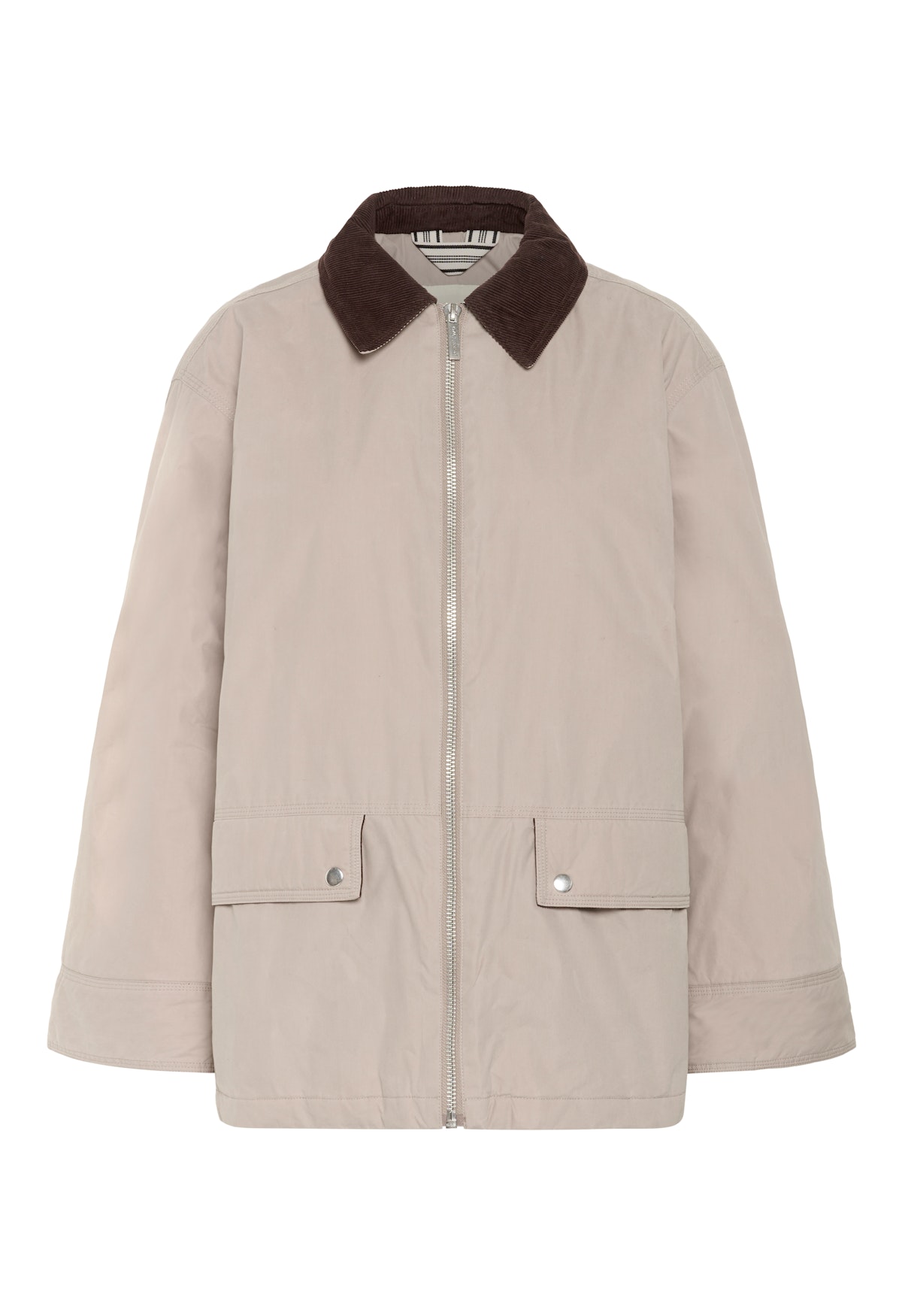 Esta chaqueta atemporal combina detalles clásicos con una funcionalidad práctica. Fabricado con un tejido duradero con cuello de pana suave, ofrece un ajuste relajado y bolsillos espaciosos con cierres de botones. La cremallera frontal facilita la colocación de capas—ideal para temporadas de transición y uso diario.