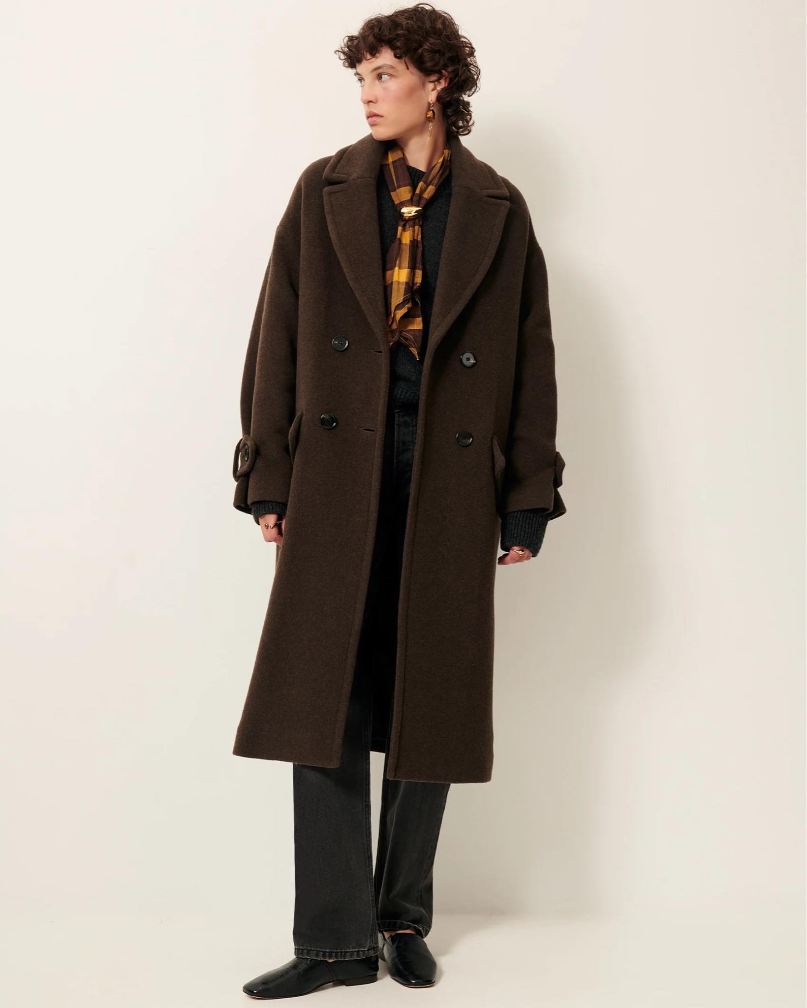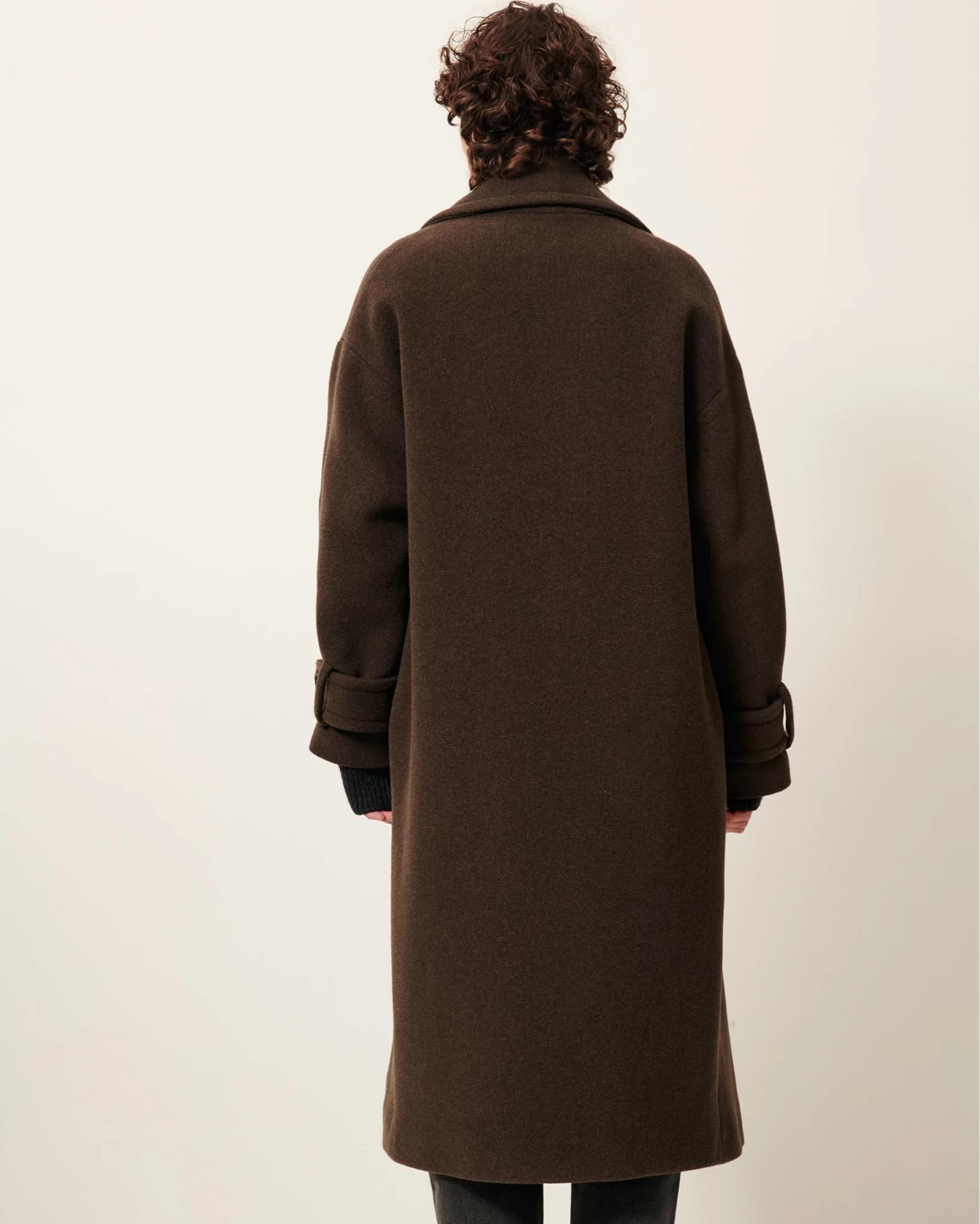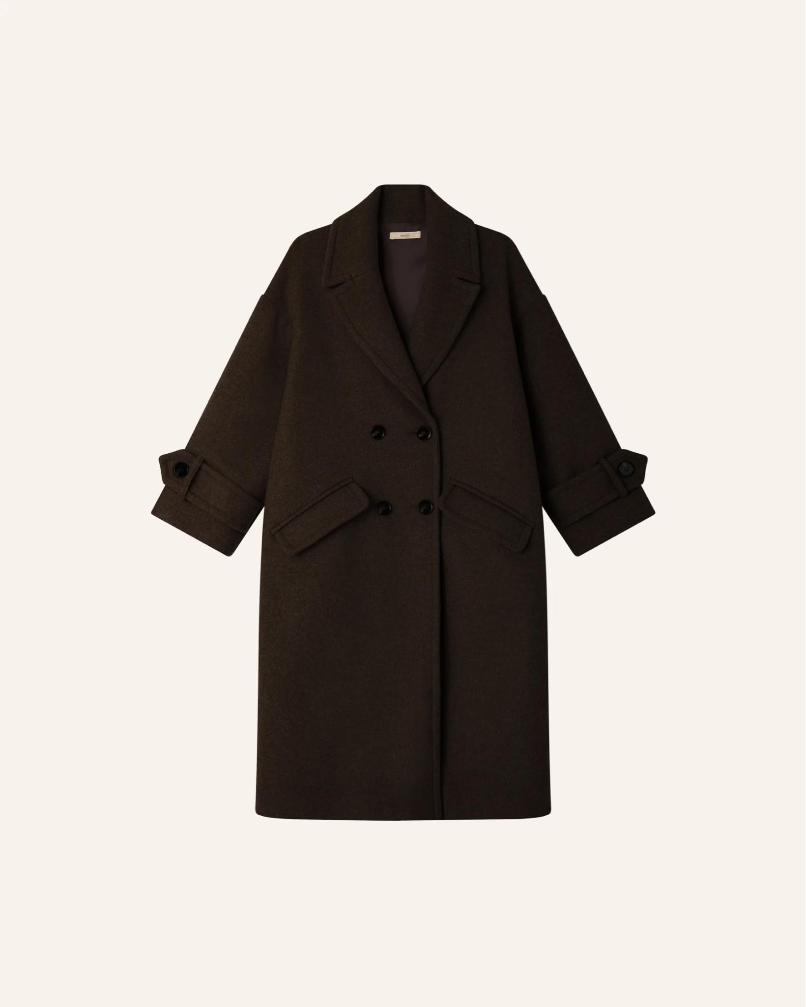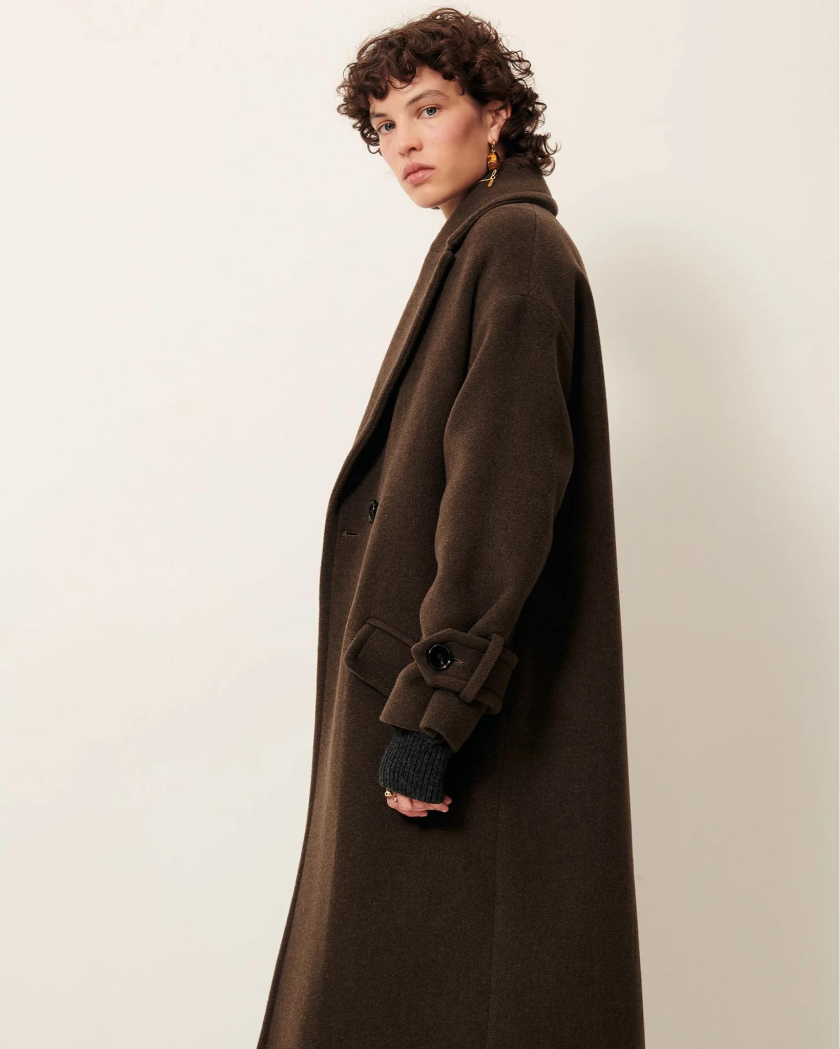 Abrigo largo de doble botonadura en doble tejido Melton con acabado aterciopelado, tejido en Italia.