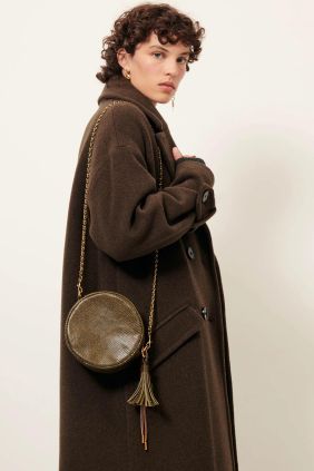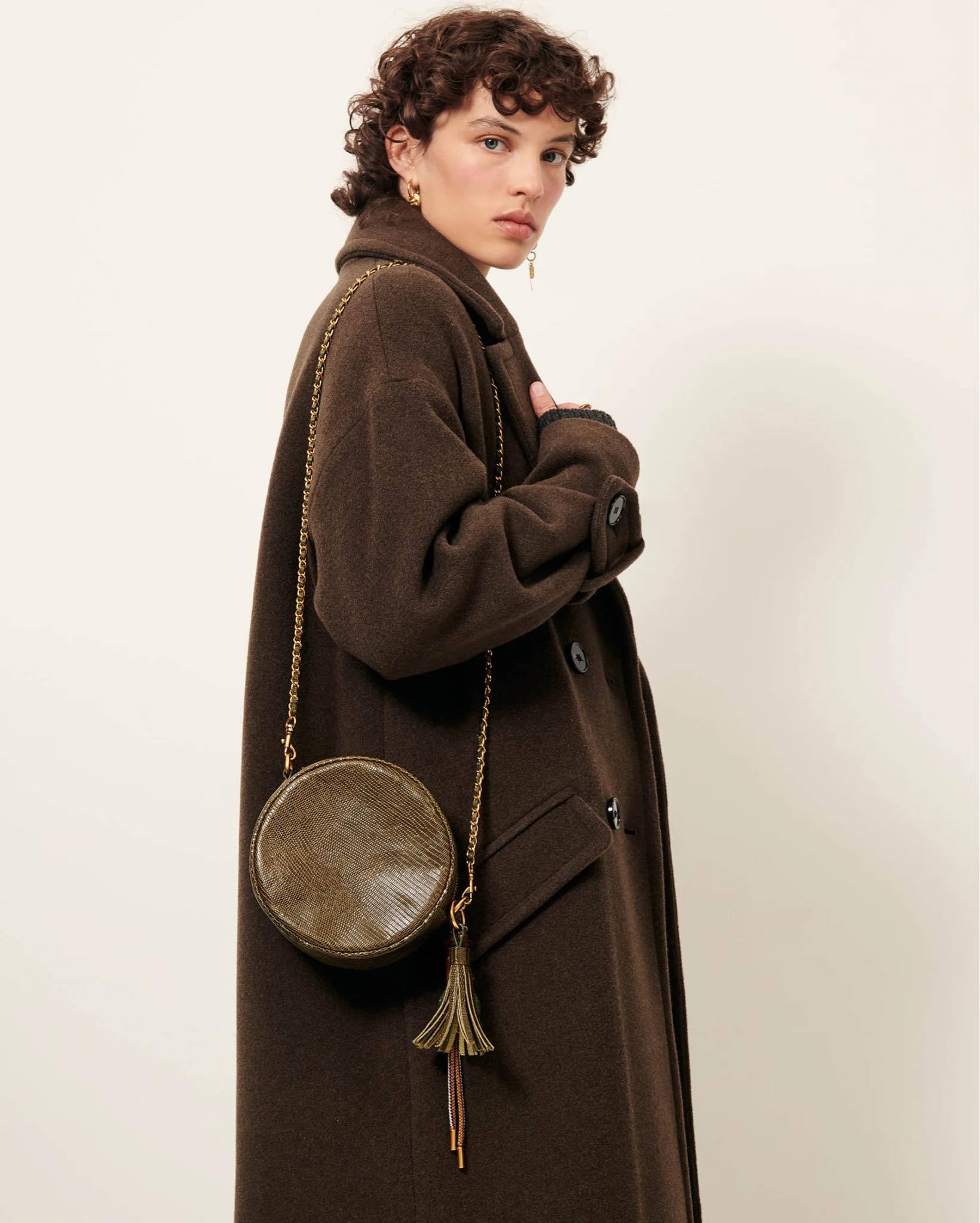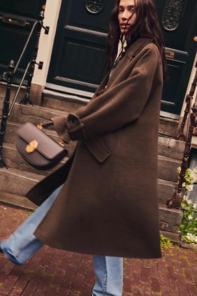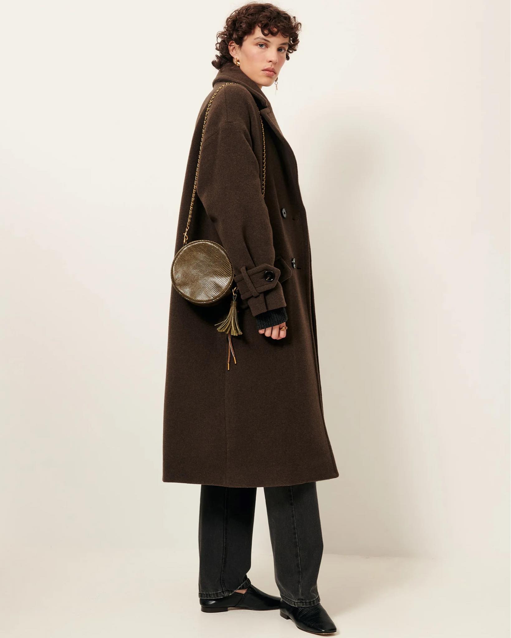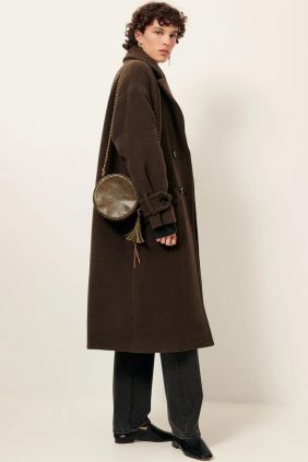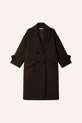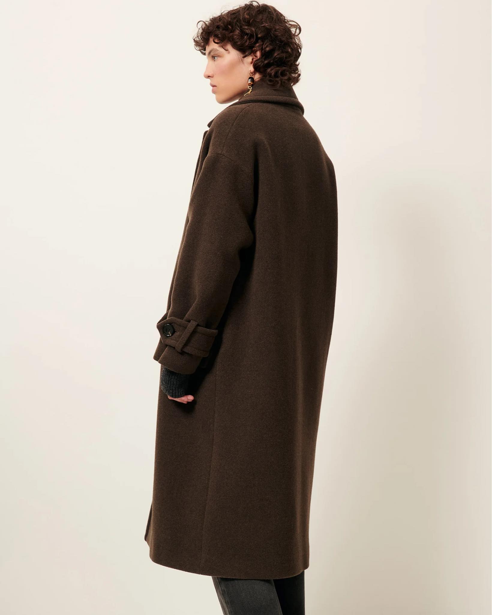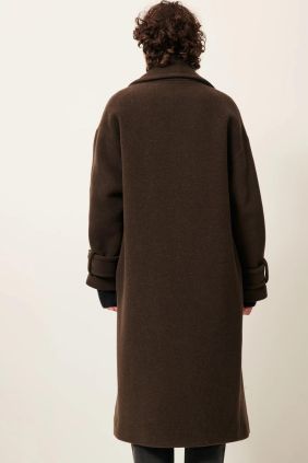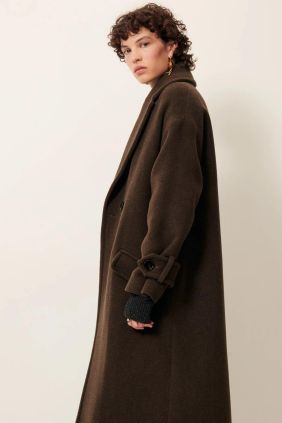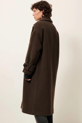 Abrigo largo de doble botonadura en doble tejido Melton con acabado aterciopelado, tejido en Italia.
