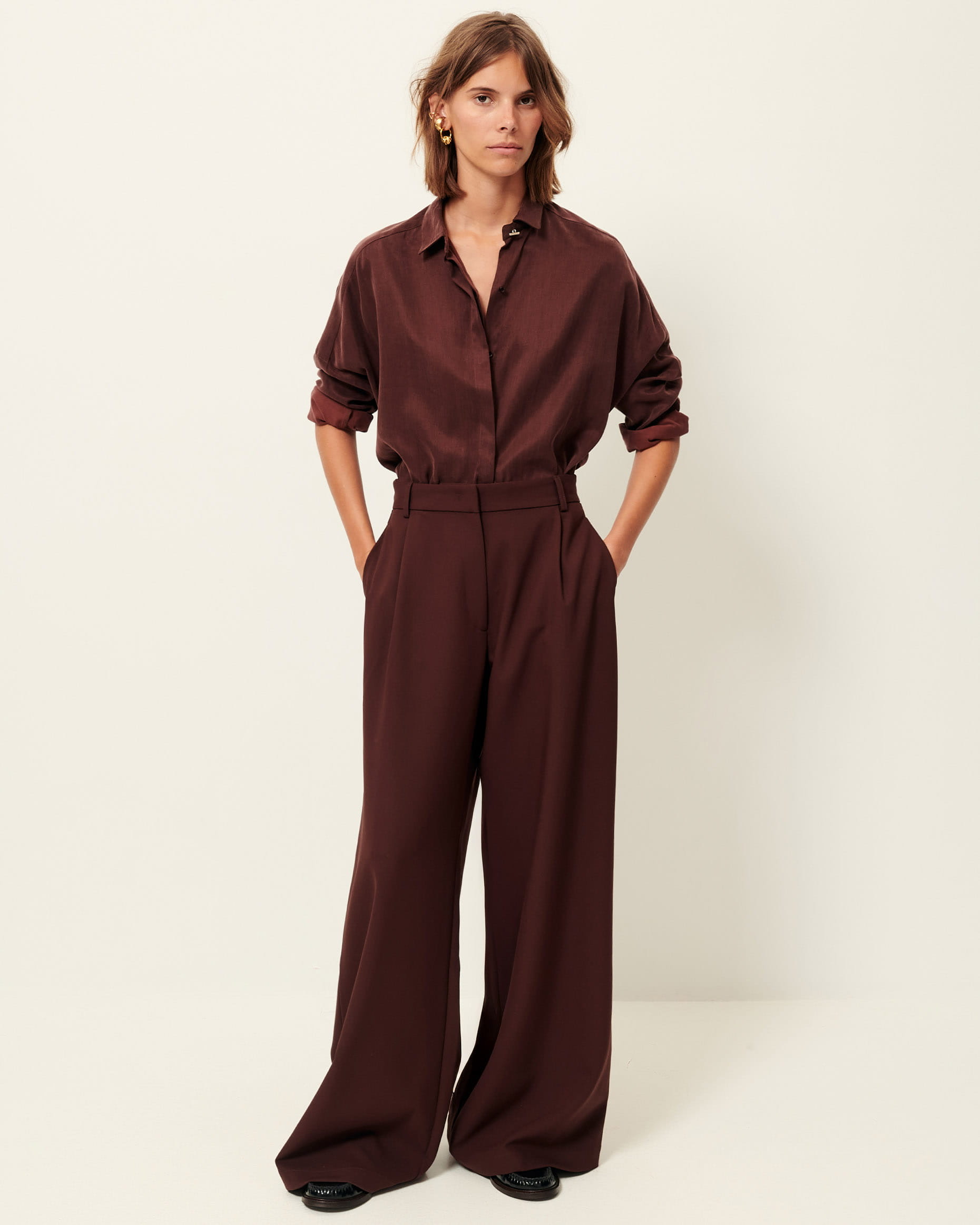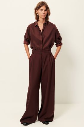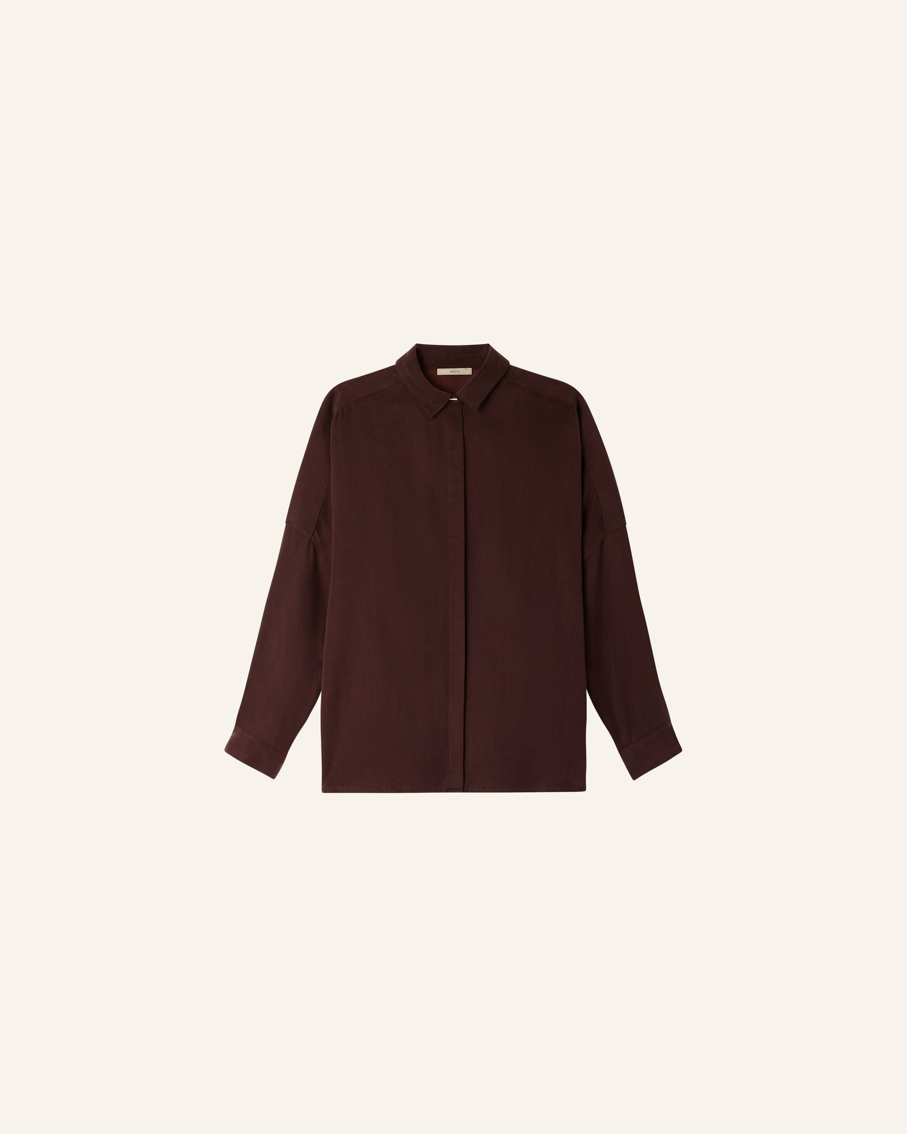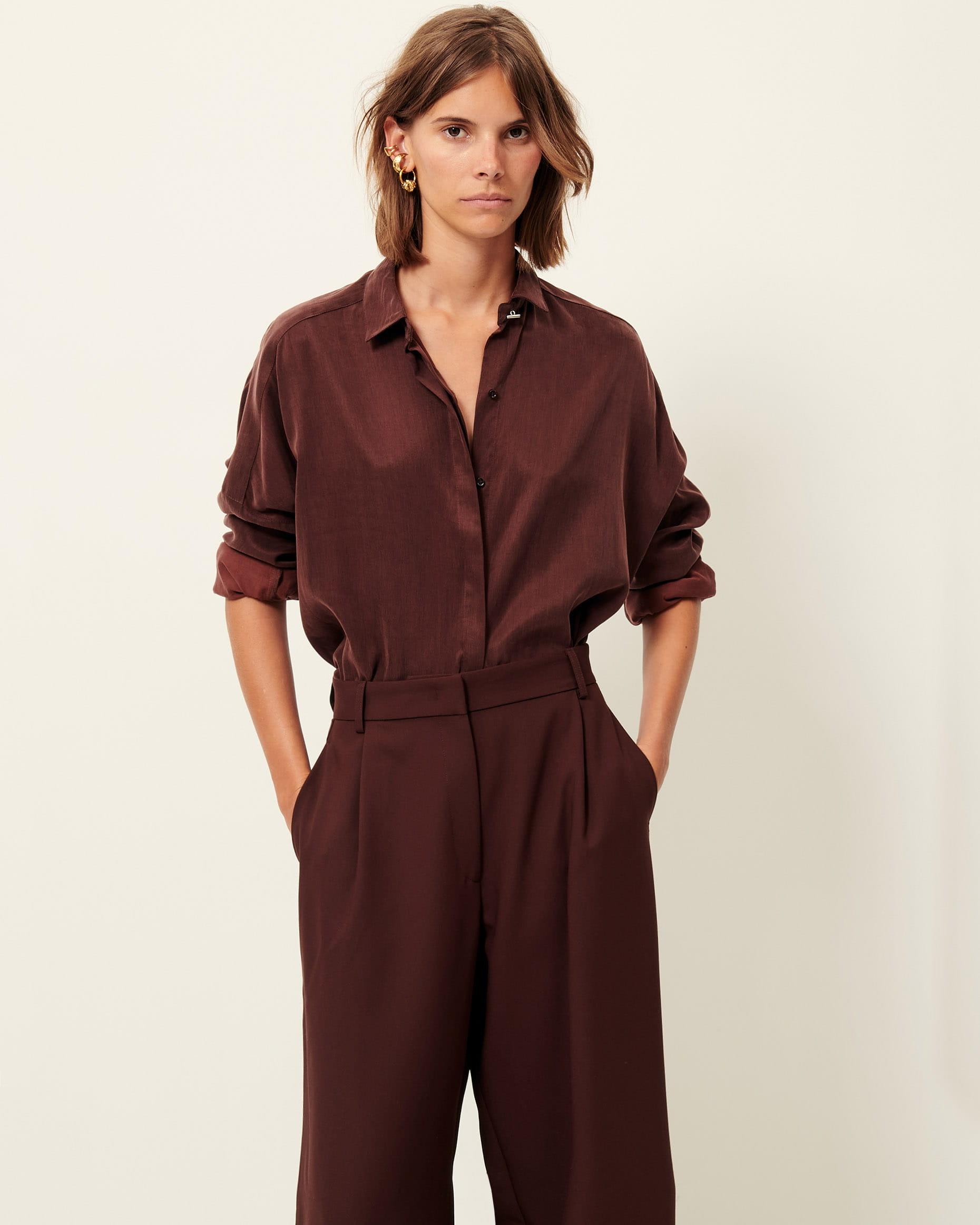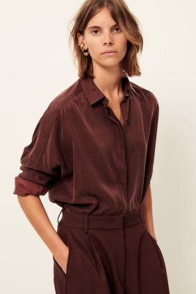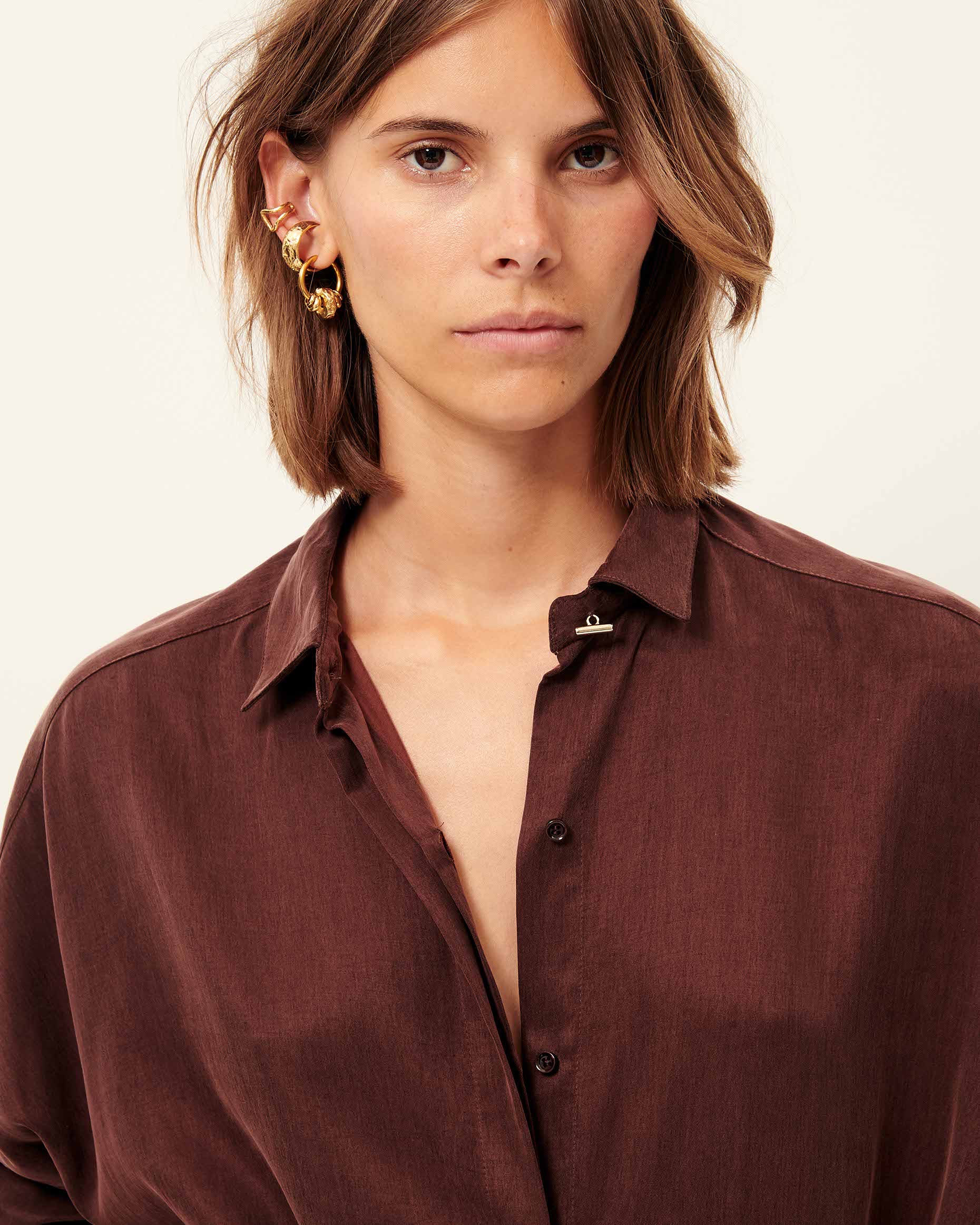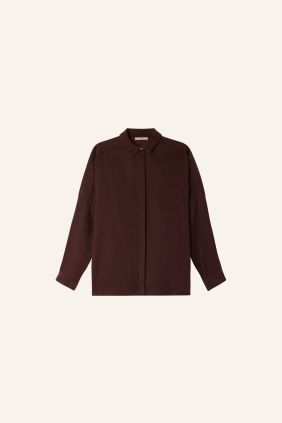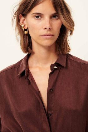 Camisa en satén de cupro con cierre de botones oculto .Incluye botón joya en el cuello.
