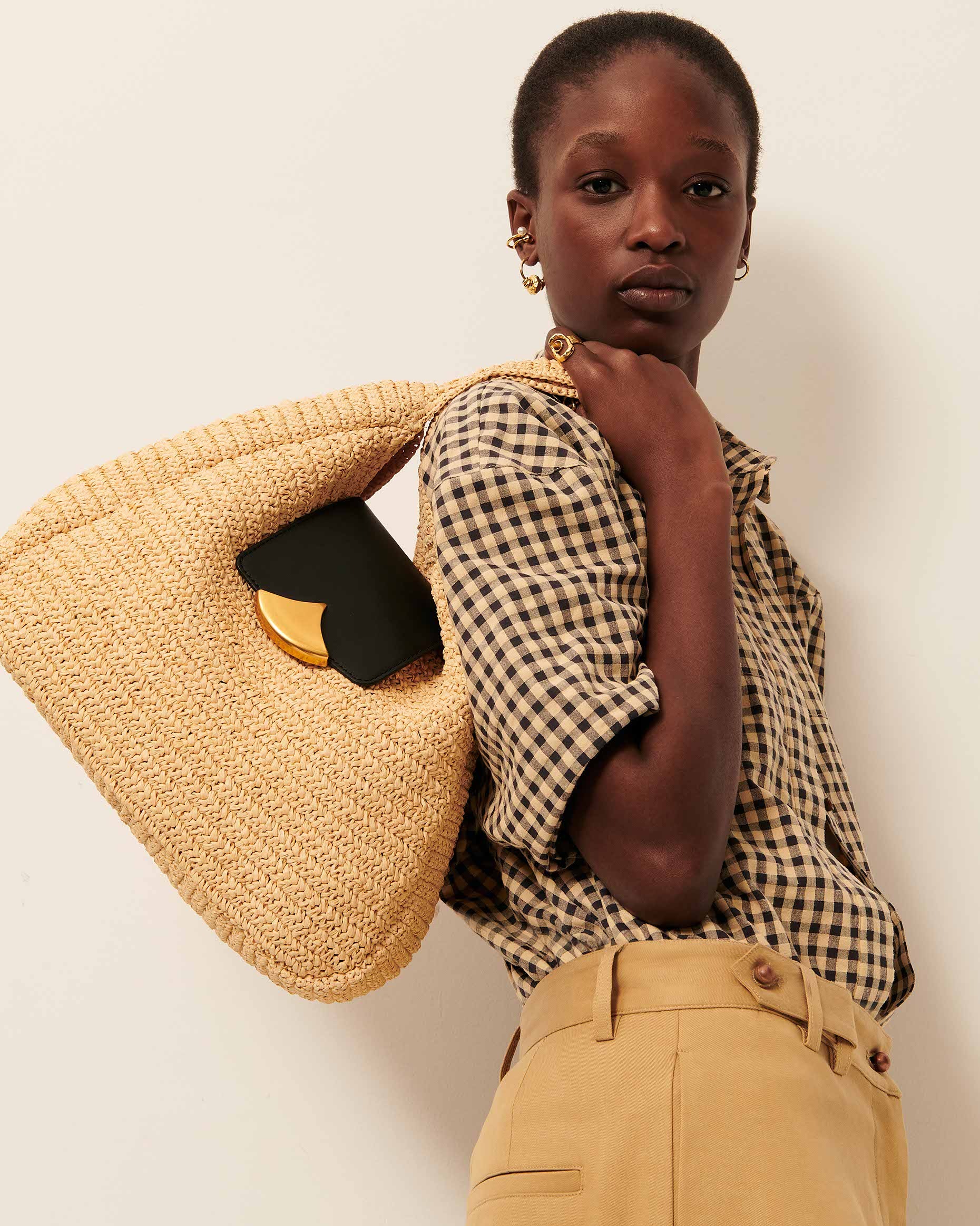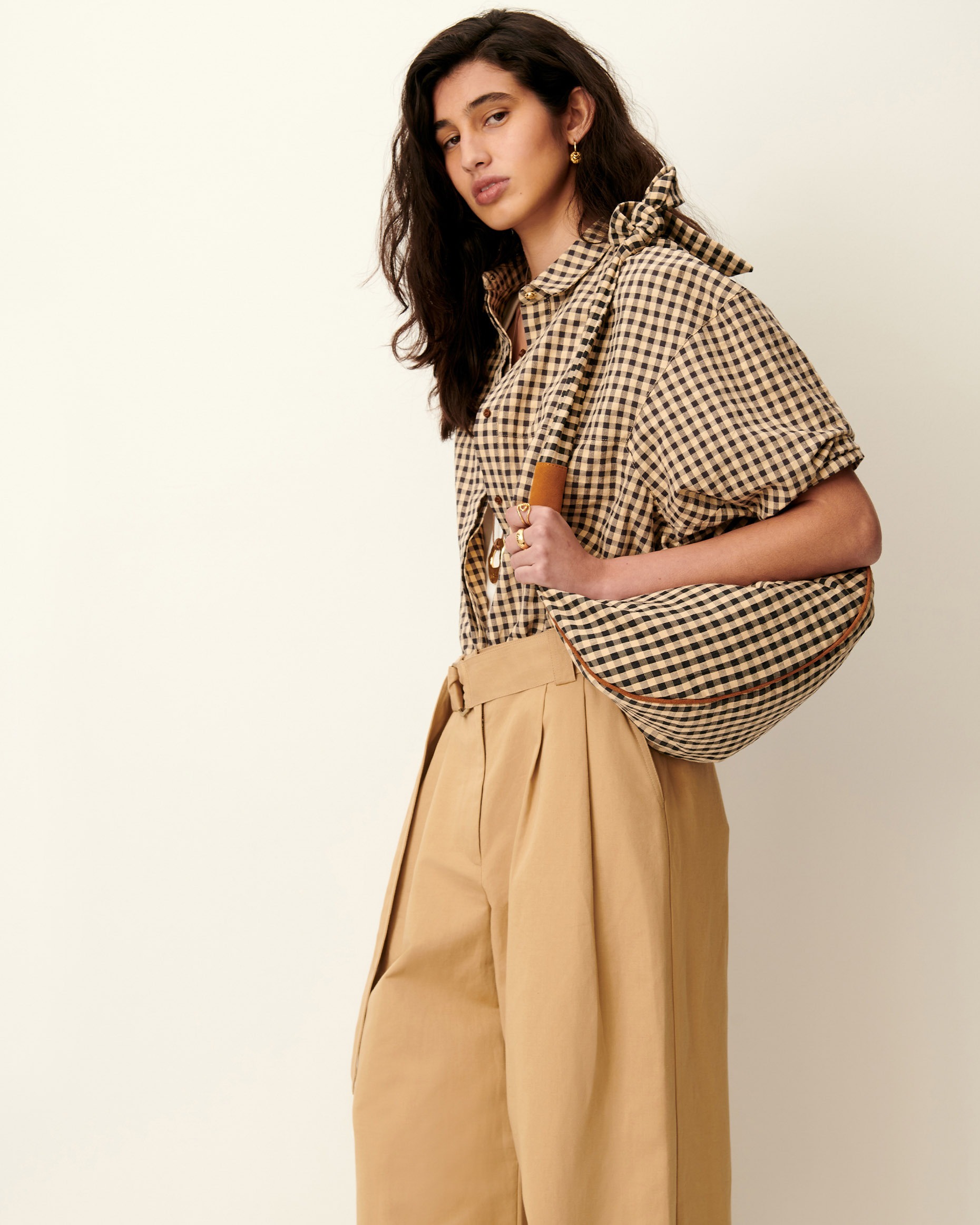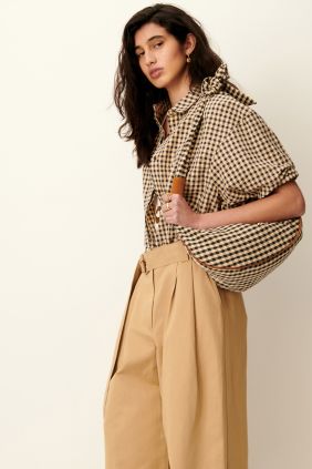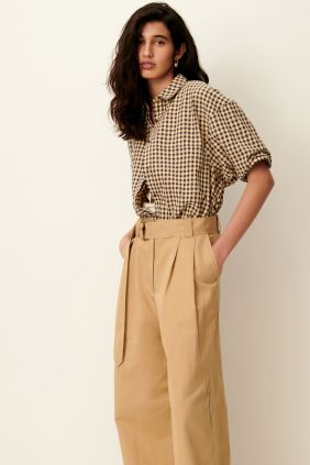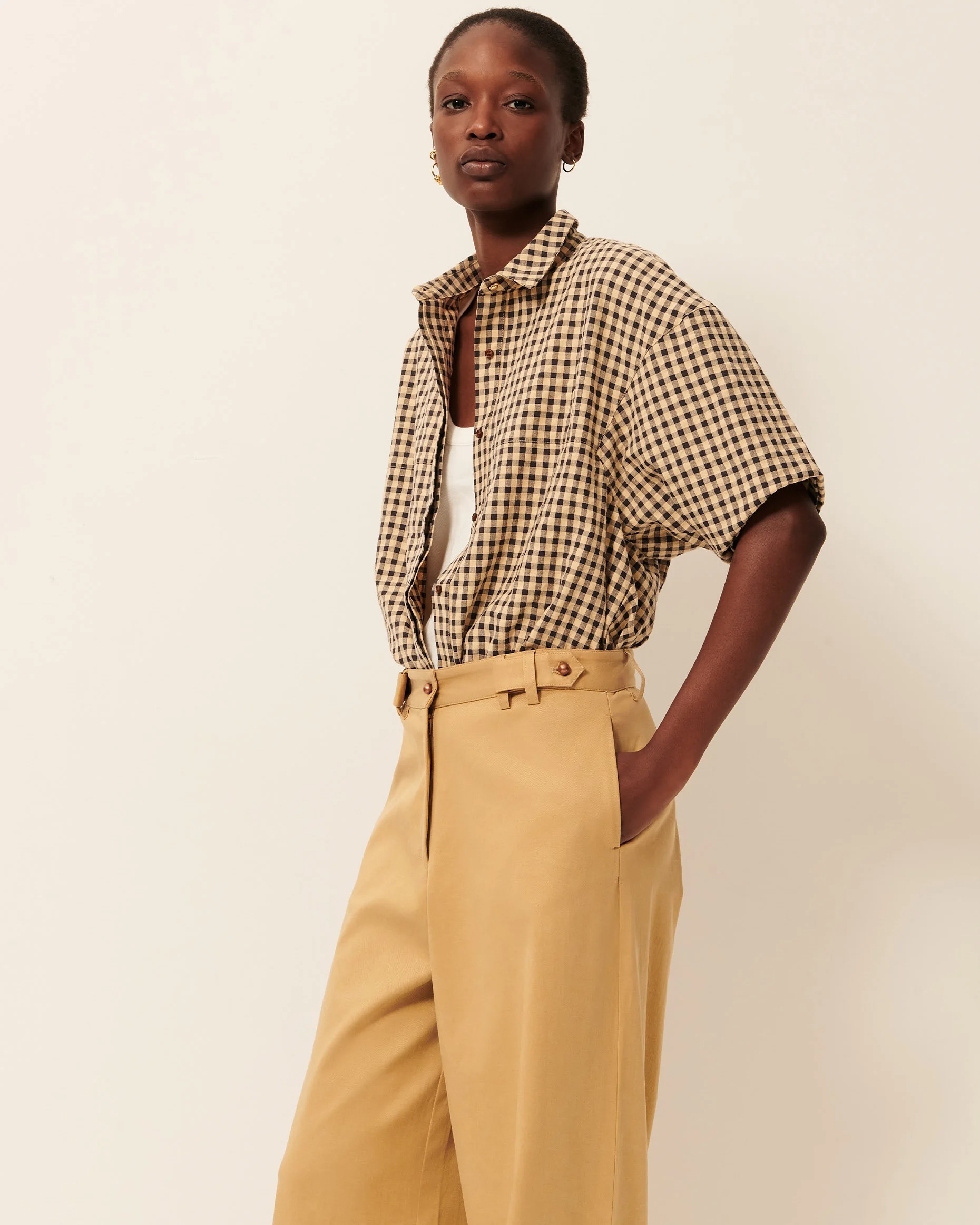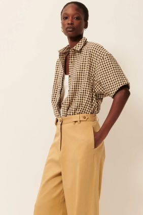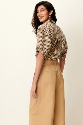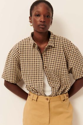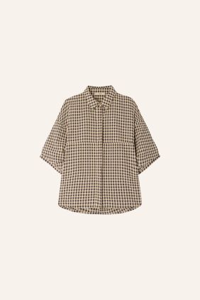 Camisa en cuadro Vichy de maga corta confeccionada en lona de algodón ligeramente gofrada.