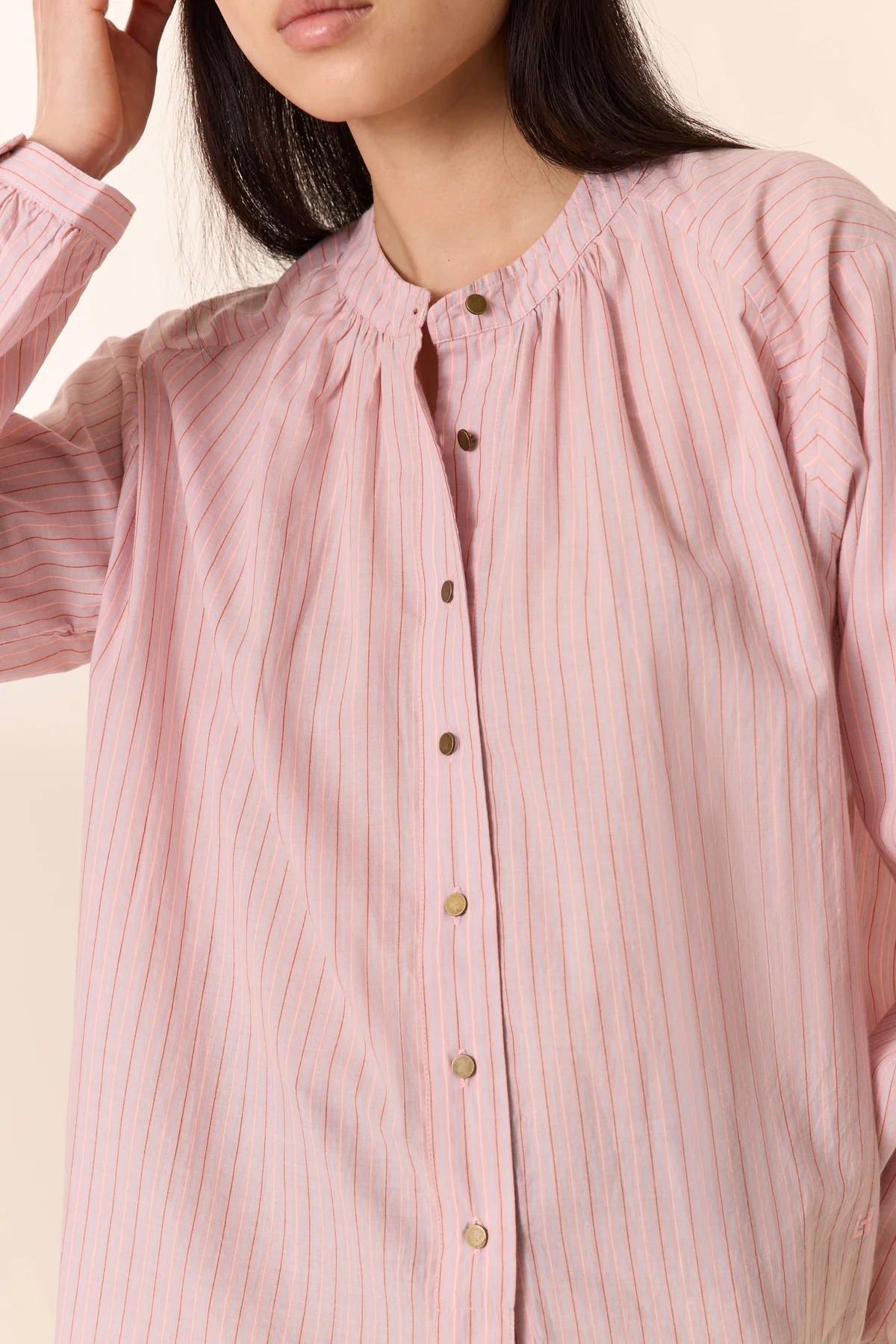 Camisa Chemise Cirus Strp de Leon & Harper en color Pink (rosa), confeccionada en 100?% algodón orgánico para una sensación suave, ligera y transpirable. Presenta un estampado de rayas verticales, que aporta un estilo fresco y contemporáneo, ideal tanto para looks casuales como más cuidados.