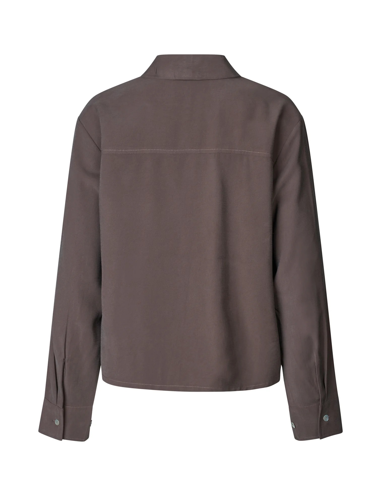 Camisa femenina de estilo contemporáneo con un diseño minimalista que combina elegancia y versatilidad. Su tono chocolate brown aporta un toque sofisticado y atemporal, perfecto para elevar cualquier look diario.