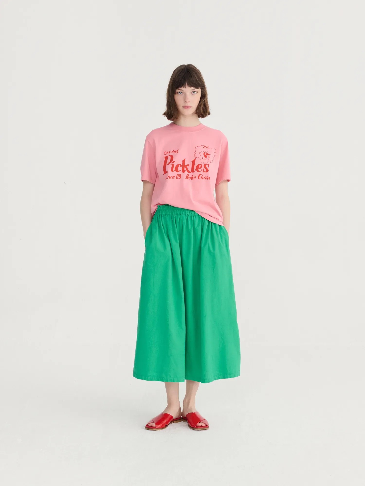 Camiseta de color rosa con diseño de corte ligeramente holgado y tejido elástico.