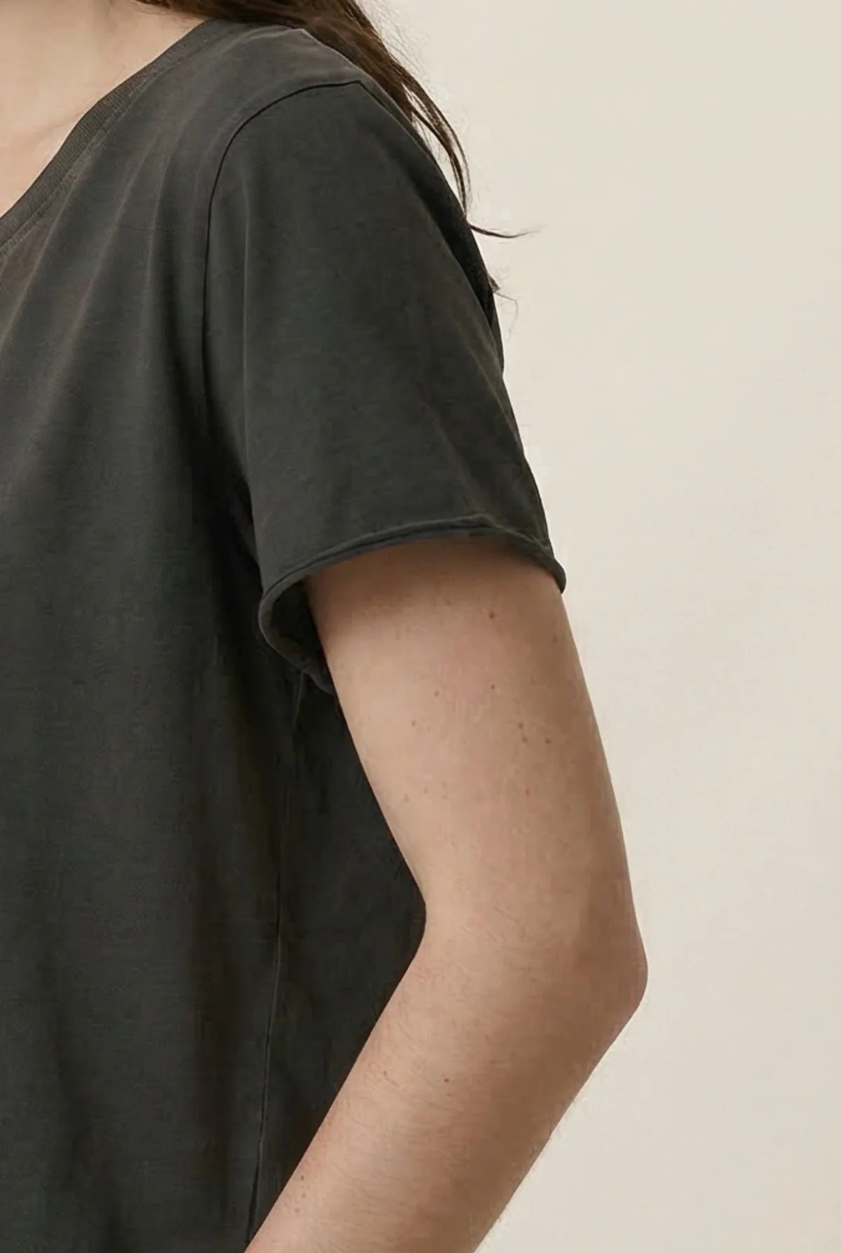 El modelo presenta cuello redondo y manga corta con corte recto, creando una silueta sencilla y versátil que se combina fácilmente con vaqueros, pantalones o shorts para outfits casuales o con un toque más sofisticado con blazer ligera. Diseñada para acompañarte en tu día a día con comodidad sin renunciar al estilo.
