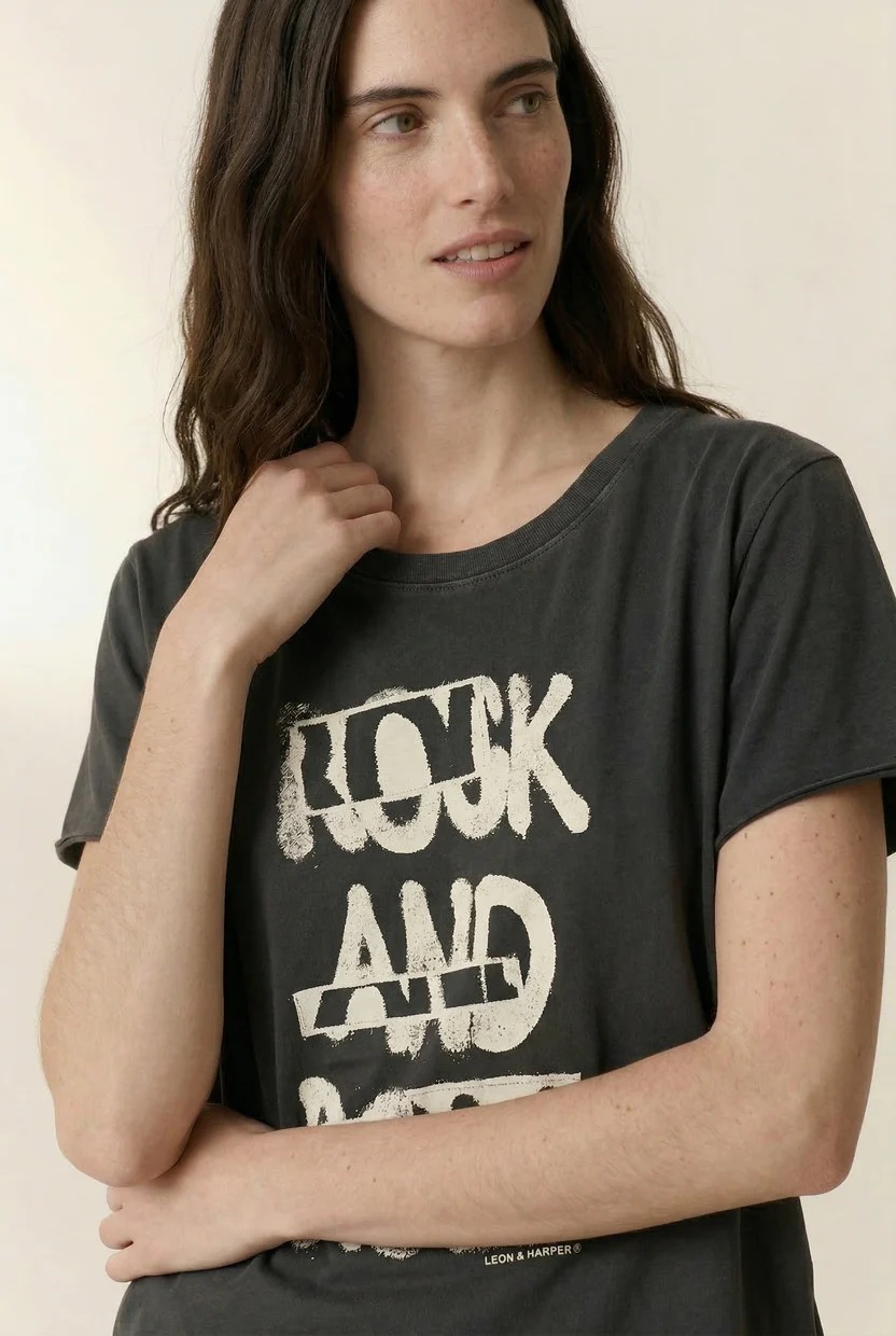 Camiseta femenina de estilo informal y urbano de la colección Leon & Harper, confeccionada en 100% algodón orgánico, suave al tacto y respetuoso con el medio ambiente. Su diseño incorpora un estampado o detalle gráfico original que aporta un toque de personalidad y modernidad a los looks más cotidianos.