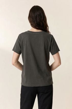 Gracias a su tejido de algodón orgánico 100%, esta camiseta no solo es cómoda y transpirable, sino también una opción sostenible dentro de tu armario. Un básico con personalidad que encaja en múltiples estilos.