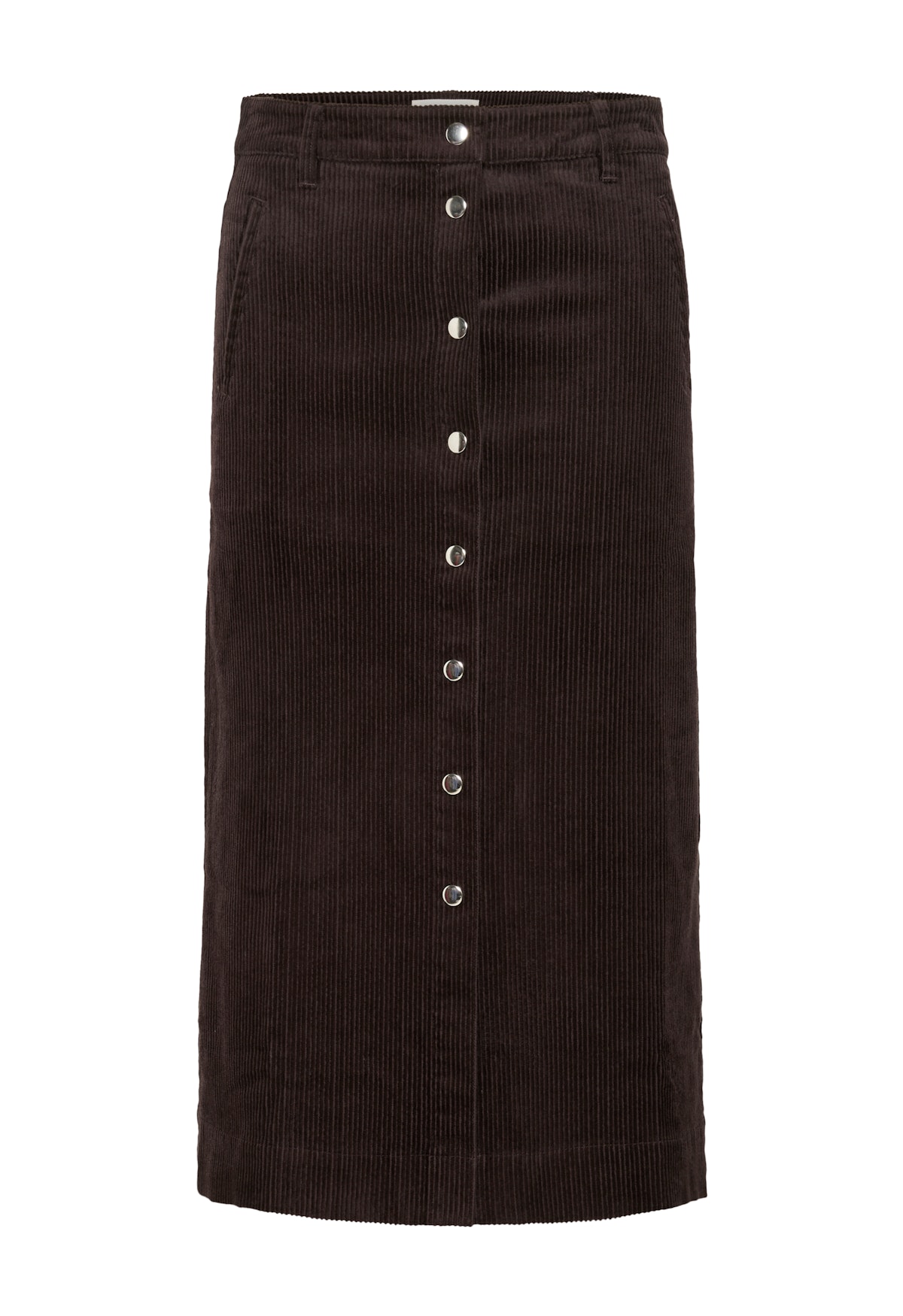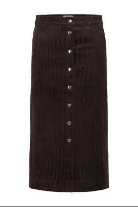 Esta falda midi de pana marrón oscuro presenta un ajuste recto, cierre de botón delantero, cremallera trasera y prácticos bolsillos laterales. La tela suave y la silueta clásica lo hacen perfecto tanto para el uso diario como para ocasiones más elegantes – estilízalo con prendas de punto y botas.