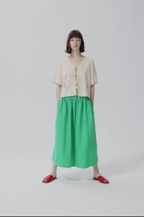 Falda de color verde .Diseño de corte relajado y largo midi.