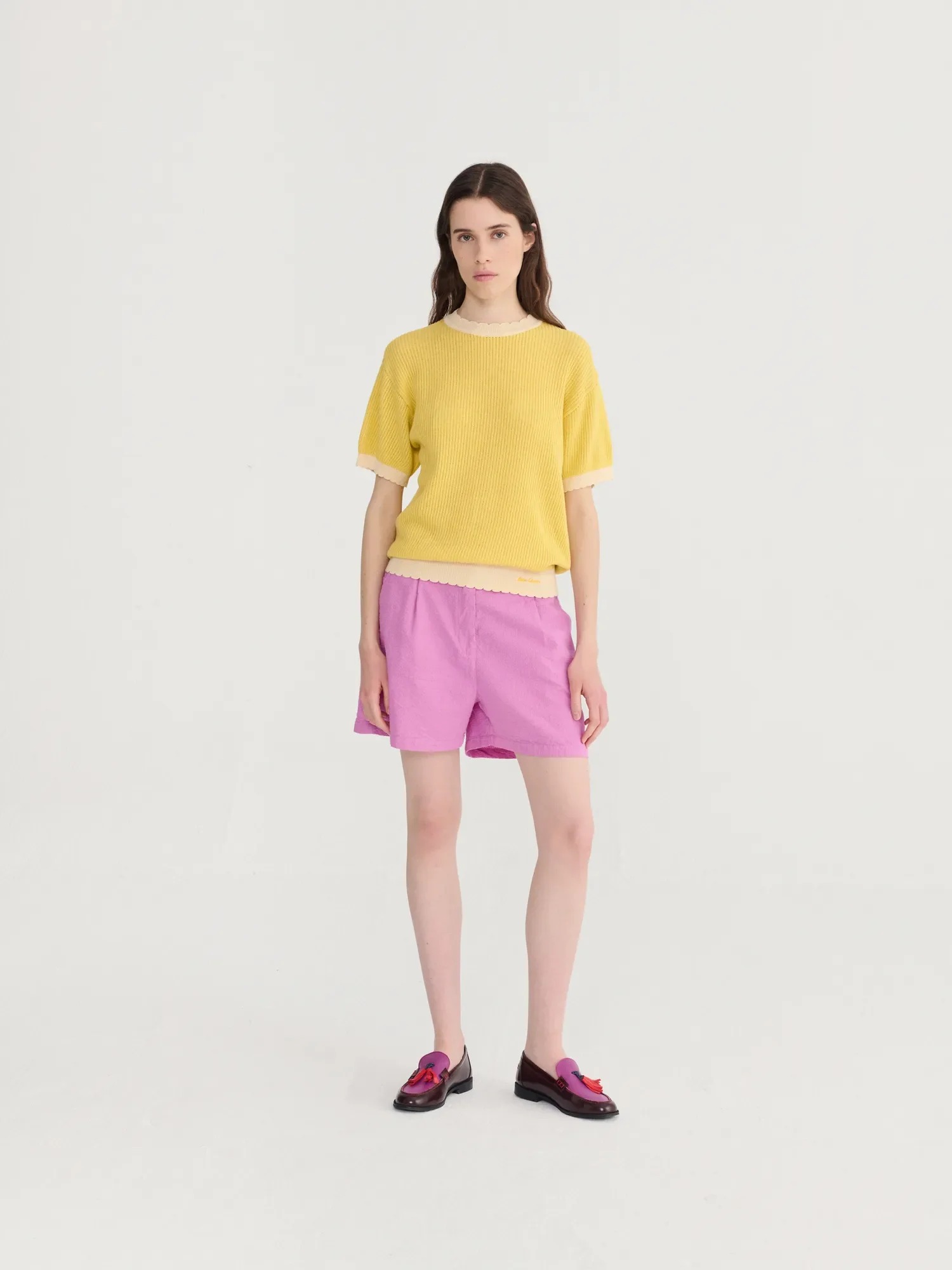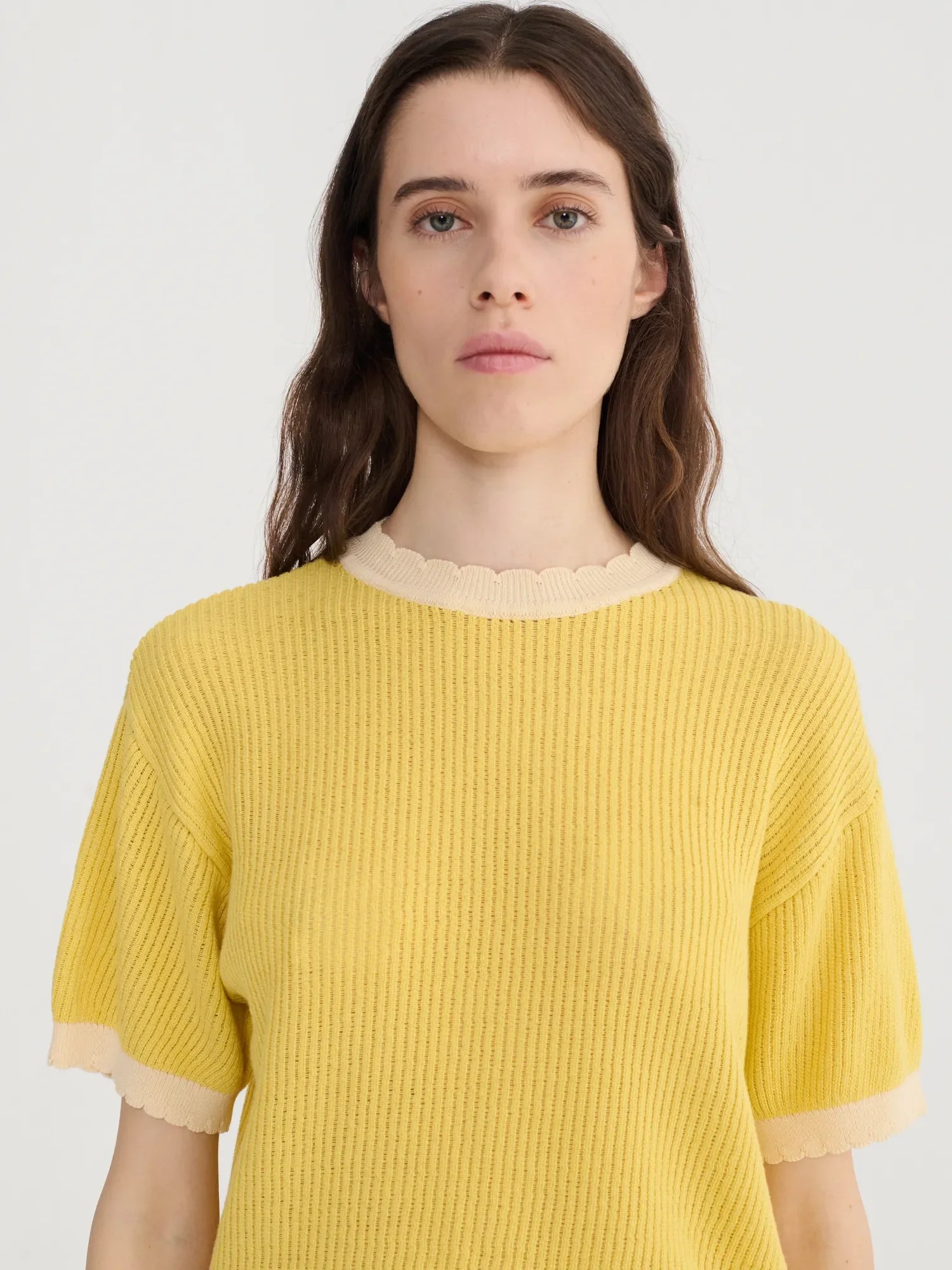 Jersey de color amarillo con vivos crudo en cuello y puños.