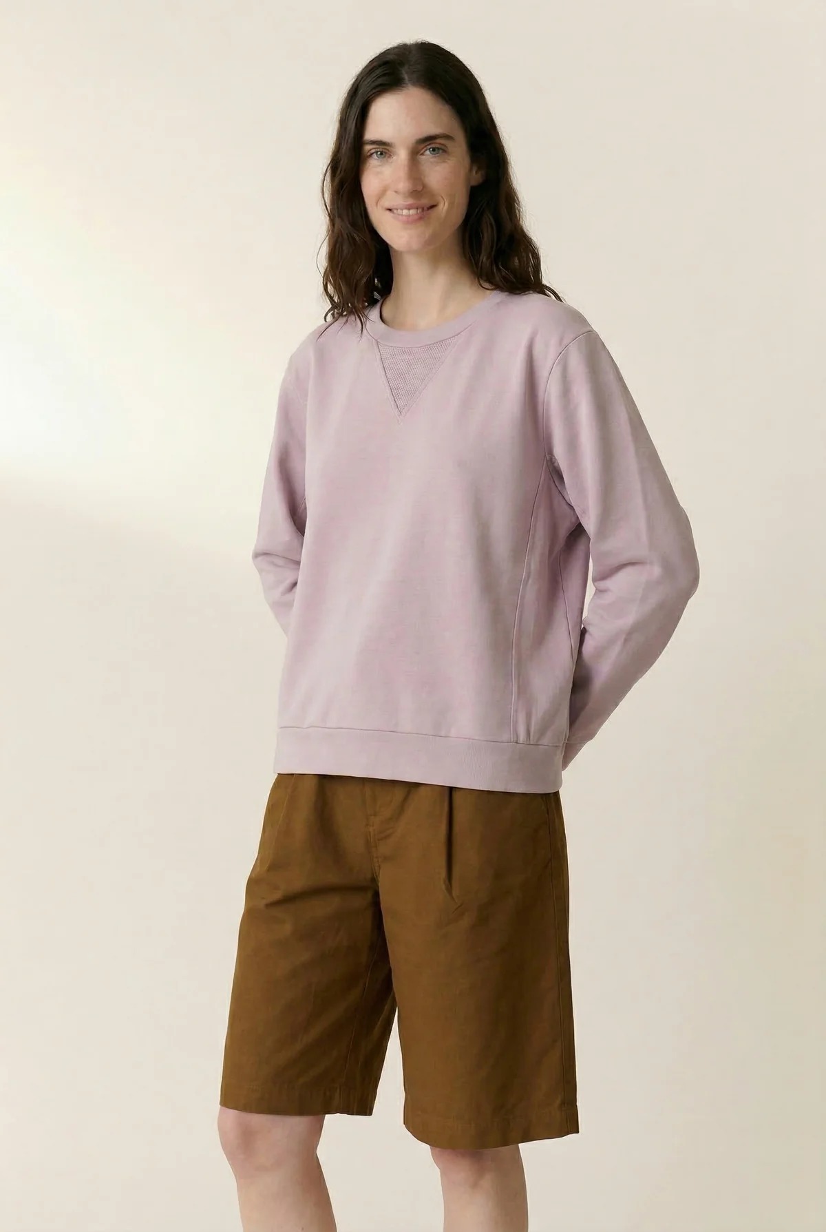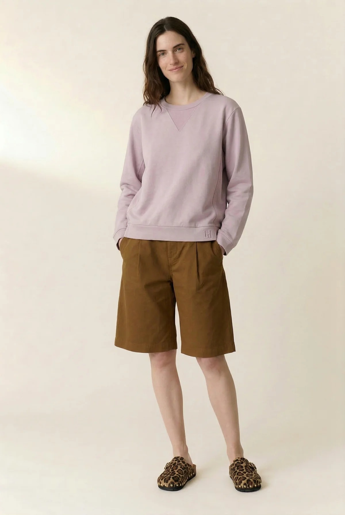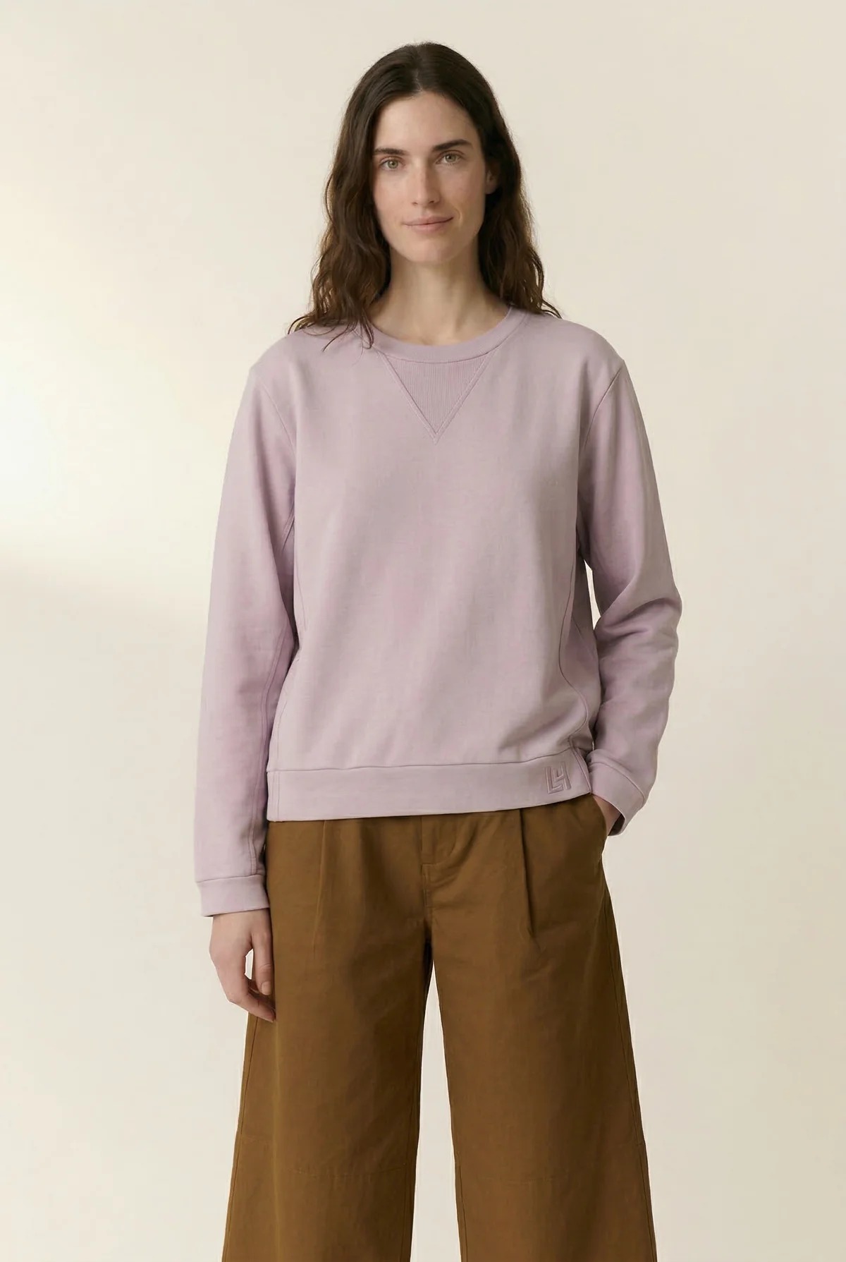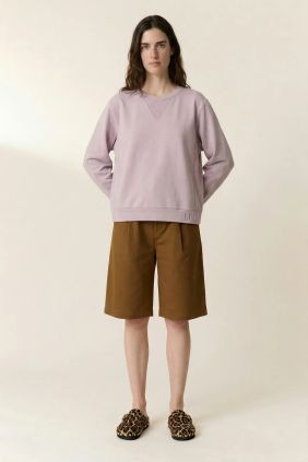 Sudadera femenina de diseño sencillo y elegante en tono lilac, confeccionada en algodón orgánico de alta calidad que ofrece suavidad, transpirabilidad y confort durante todo el día. Esta prenda refleja el estilo contemporáneo y relajado característico de Leon & Harper, ideal para completar tus outfits casual con un toque de color suave.