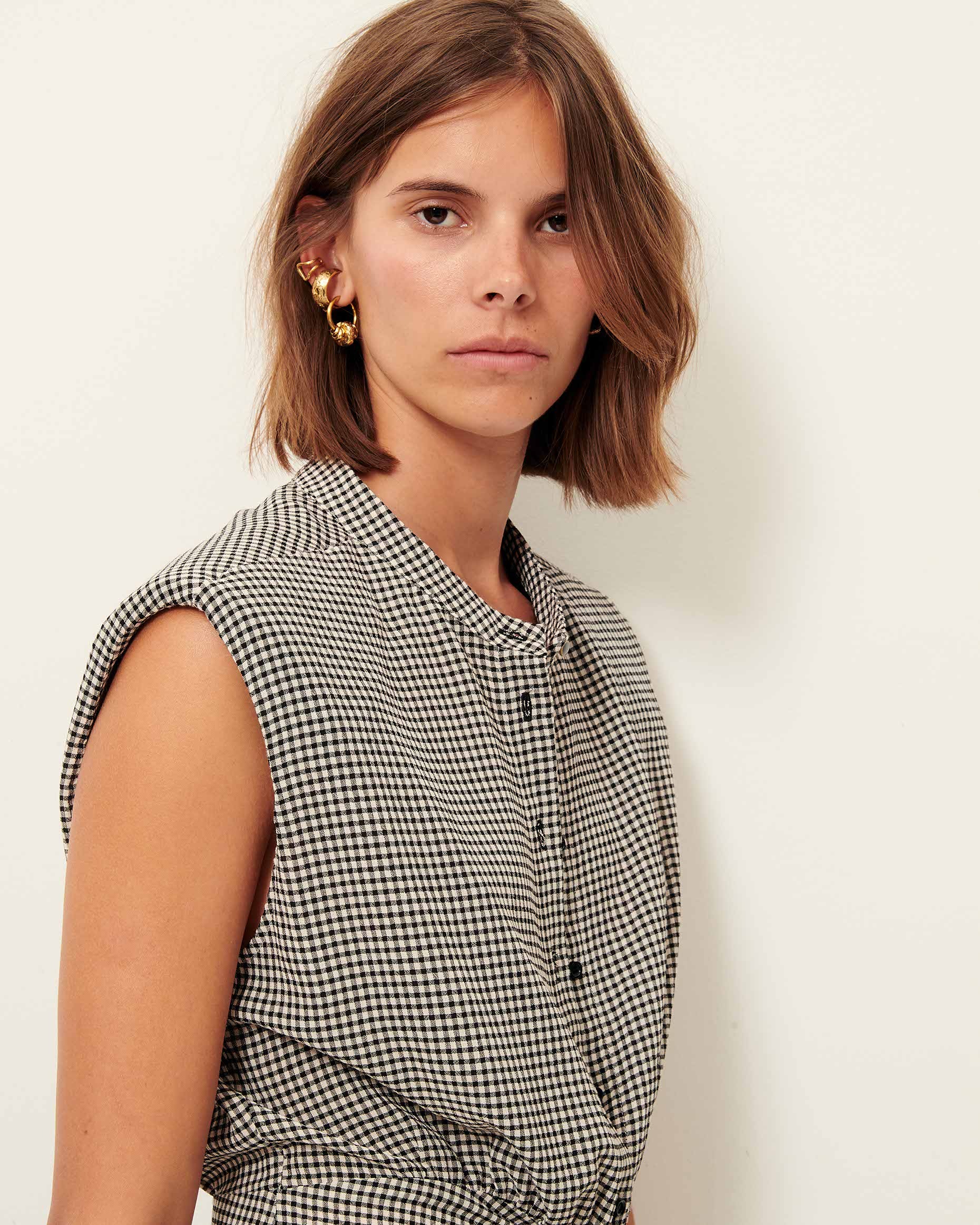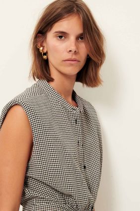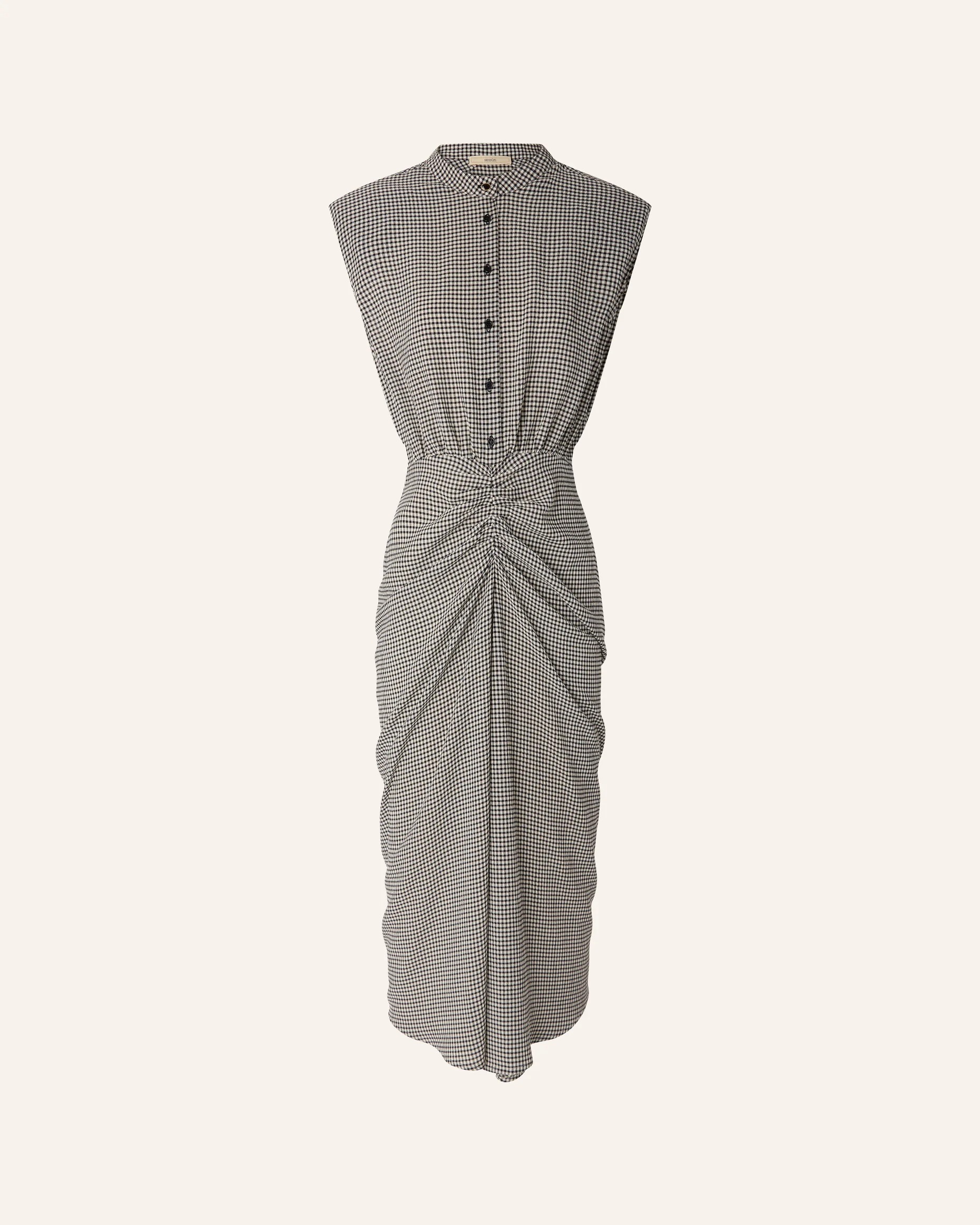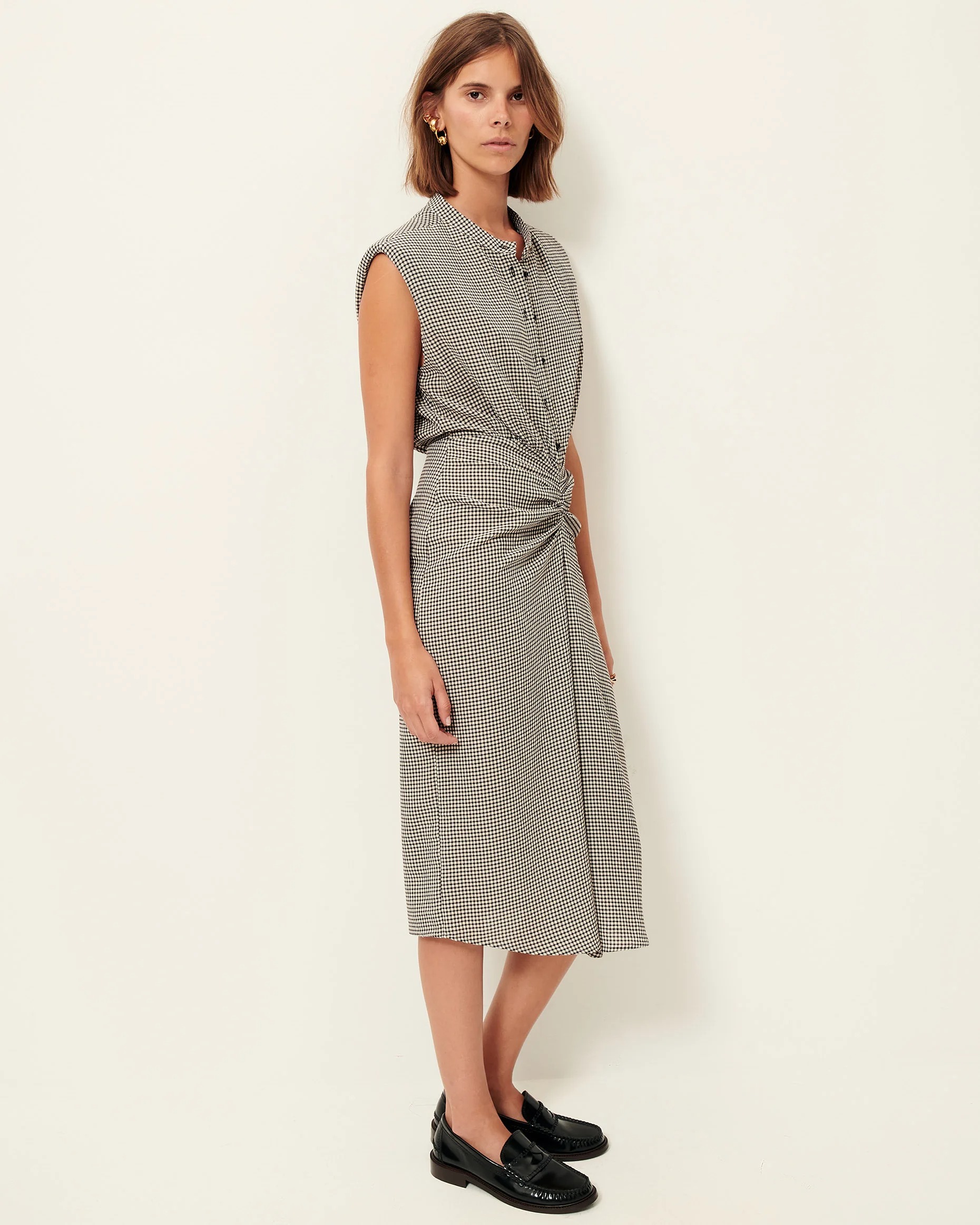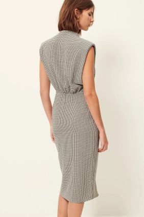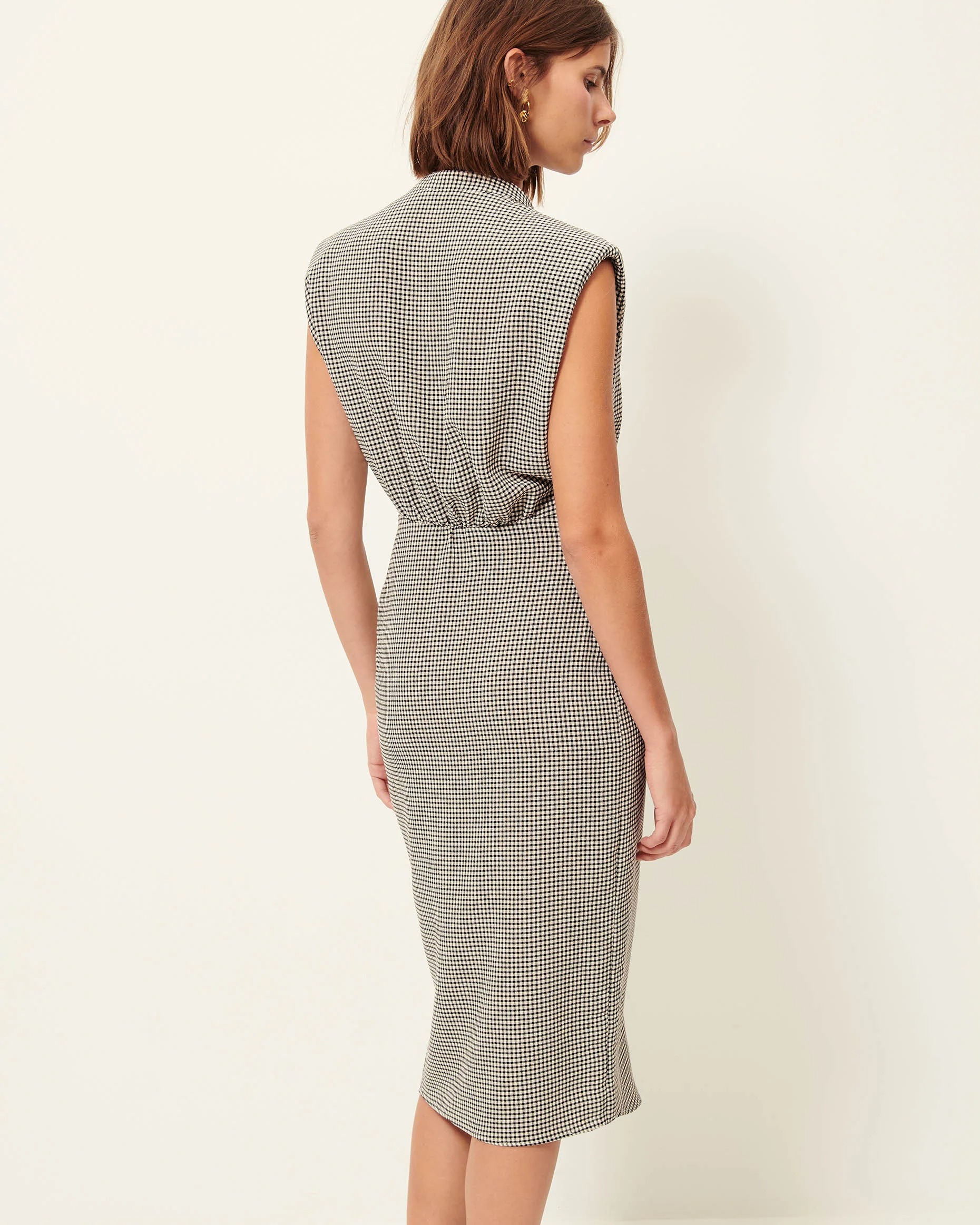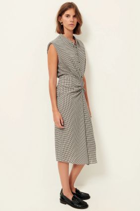 Vestido Midi fruncido confeccionado en un ligero crepe estampado en cuadro vichy.
