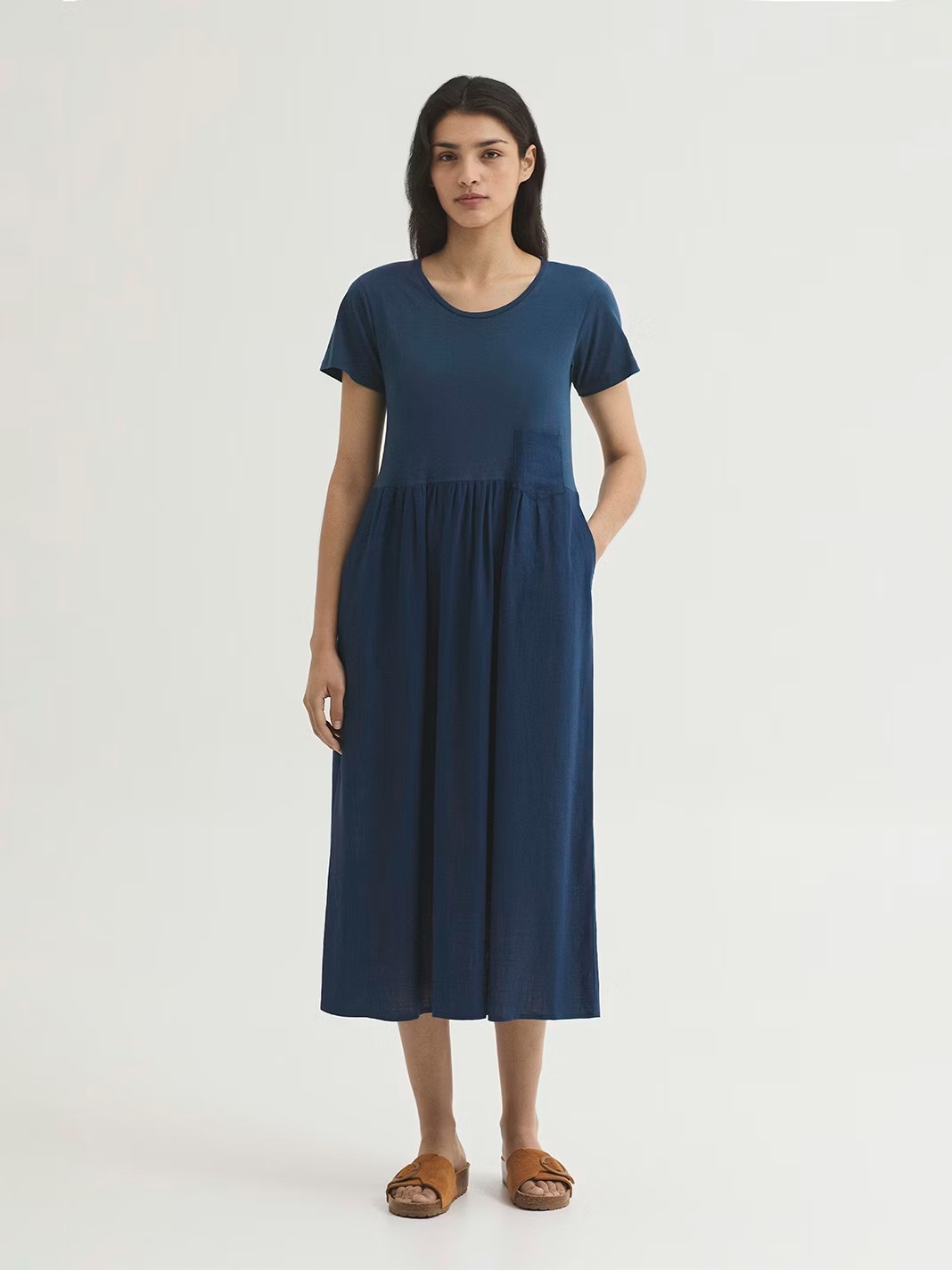 Vestido femenino con diseño bimateria que combina la frescura del lino con la suavidad del algodón, creando una prenda ligera, cómoda y con un estilo natural y atemporal. Este modelo refleja la esencia de Nice Things Paloma S, donde la feminidad y la comodidad se unen en prendas versátiles y llenas de personalidad