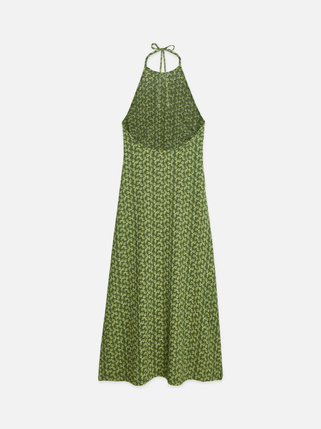 El modelo presenta un corte midi sin mangas, con una silueta fluida que se adapta suavemente al cuerpo, ofreciendo comodidad y movimiento. Su diseño ligero y favorecedor permite combinarlo fácilmente con sandalias, zapatillas o incluso calzado más formal para crear diferentes estilos.